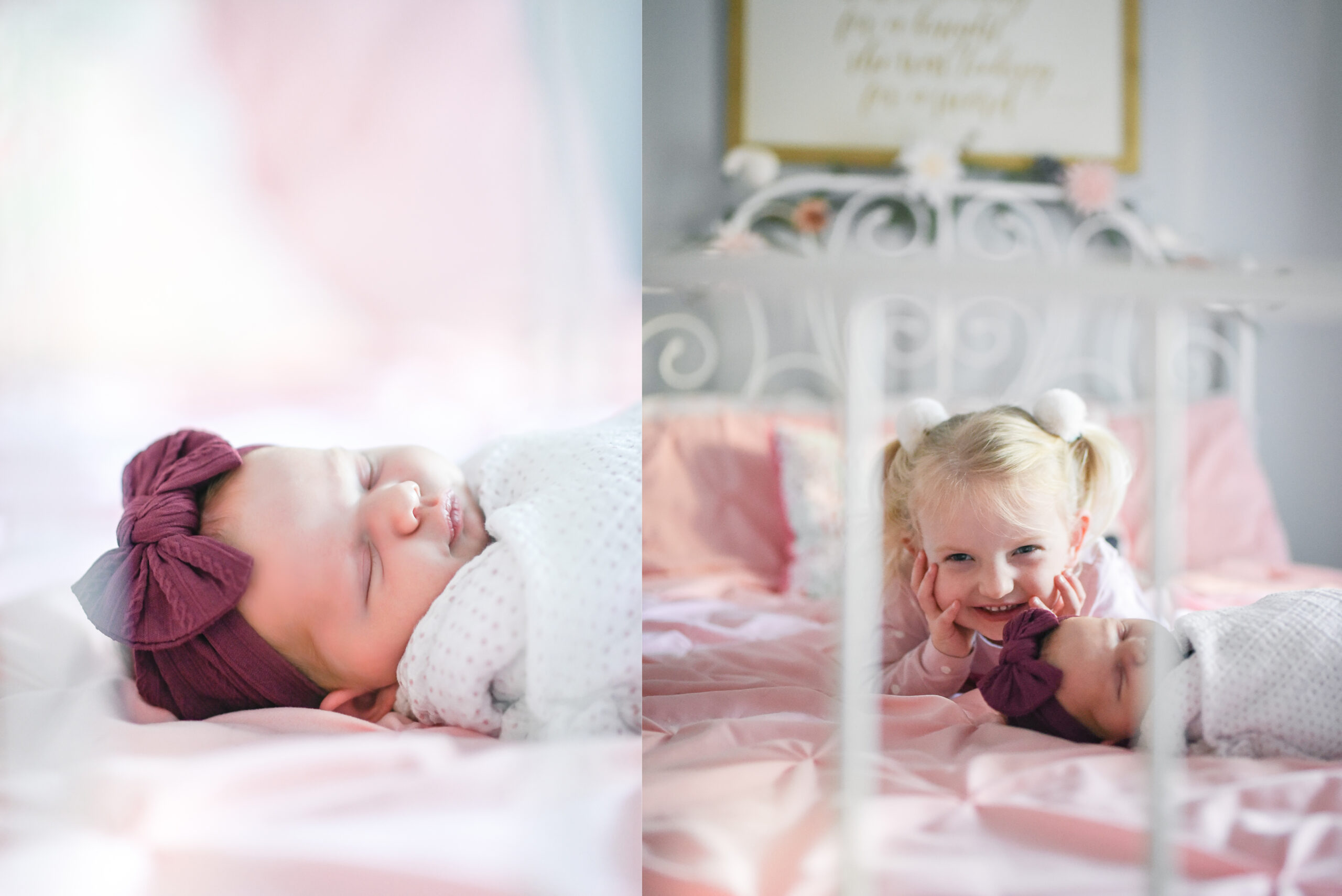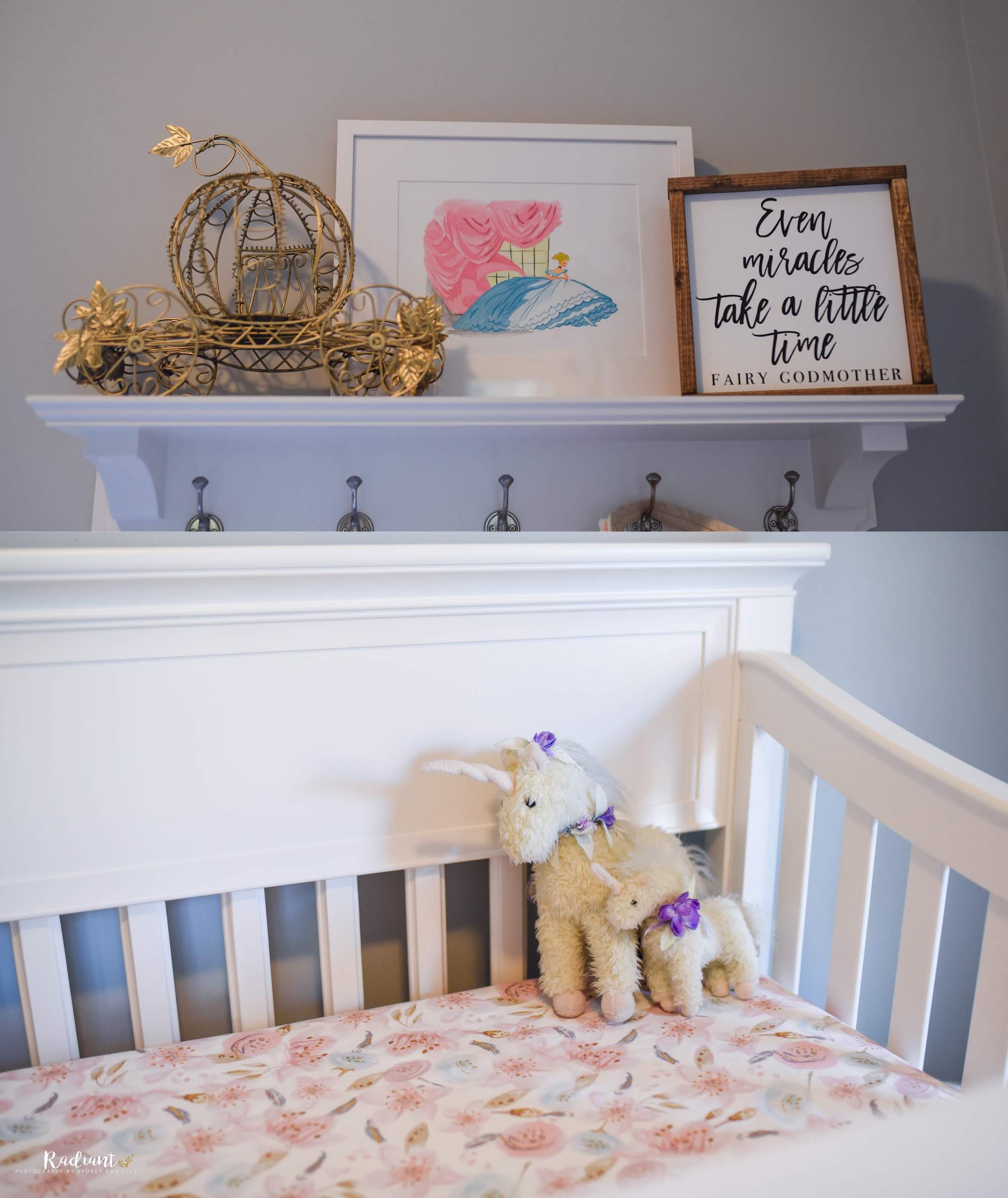 I’ve had the privilege to photograph this awesome family since 2017. When we first met, we did Christmas pictures with just the two of them and their fur baby. Now, they have 2 precious daughters. They’re also fellow Disney fans, so I thought the baby’s nursery was absolutely darling, featuring Disney inspired themes and art.