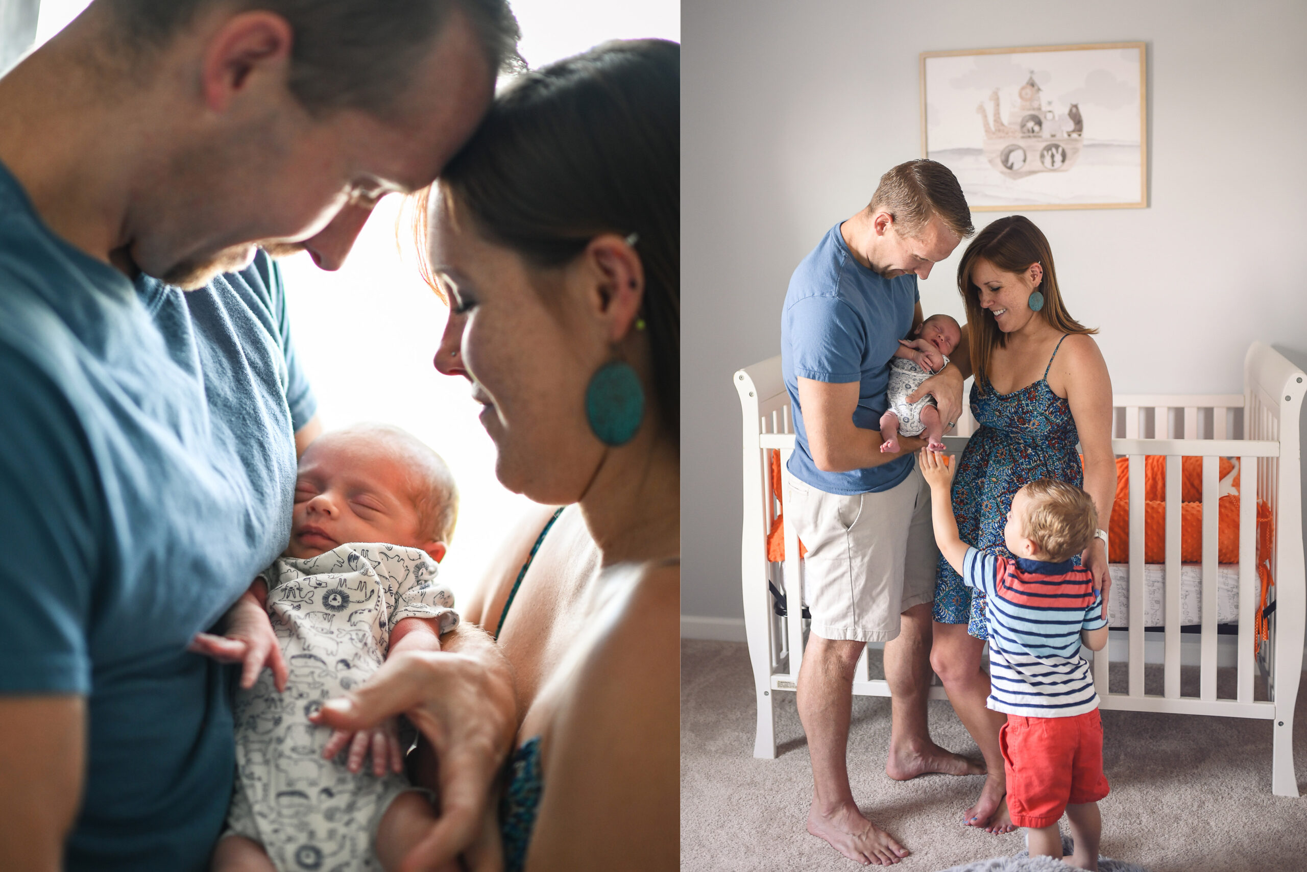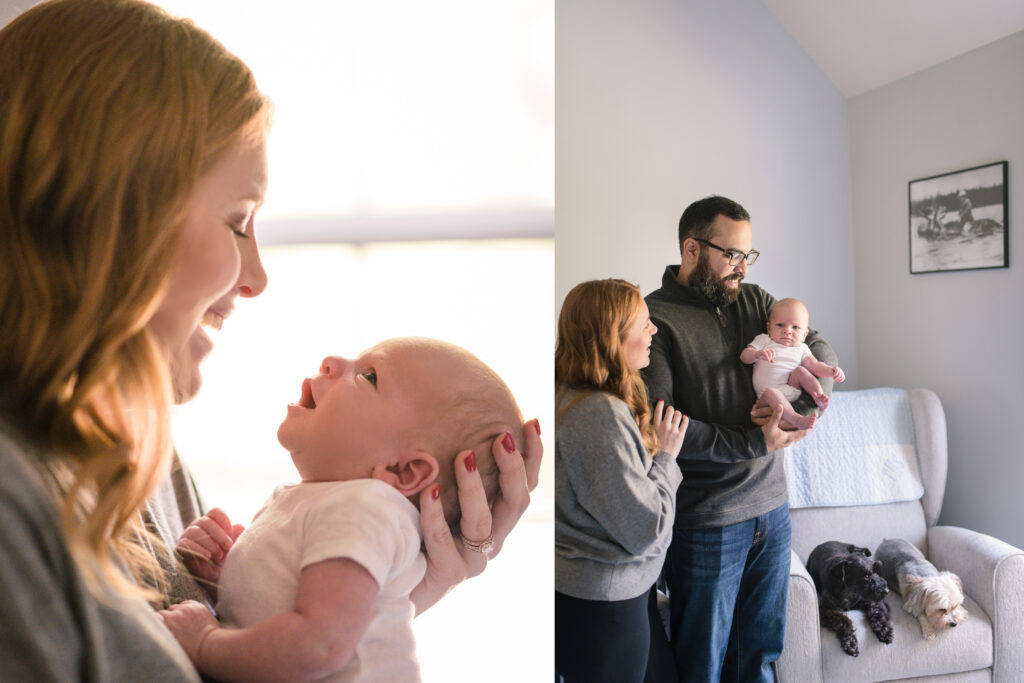 The best time is within the first 2–4 weeks of the baby’s life. When your family is still in that fresh bubble of welcoming the newest member is a great time. Unlike posed newborn photography, this style is more flexible with timing, even up to a couple months after birth.